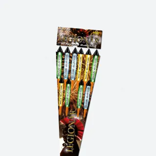 Vier große Kometenrohre á 9 Schuss mit Cracklingeffekt
